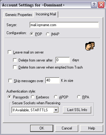 Server = The Incoming (POP3) mail server usually follows this format: mail.ispname.com (or .net). Replace the "ispname.com (or .net)" with your ISP's name.