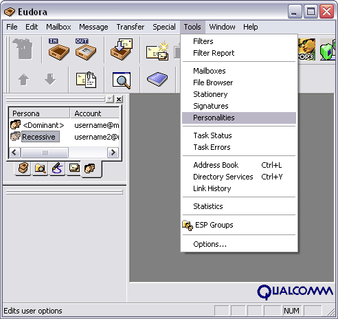 (personalities) in Eudora 5: