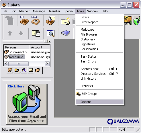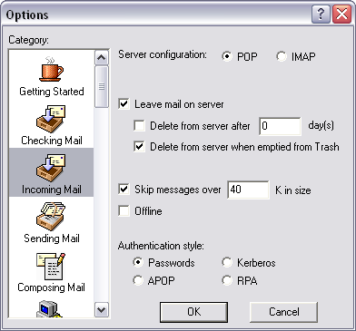 You can also enable Eudora to leave a copy of messages on the server. This, for example, can be important if you access your e-mail at work and at home.