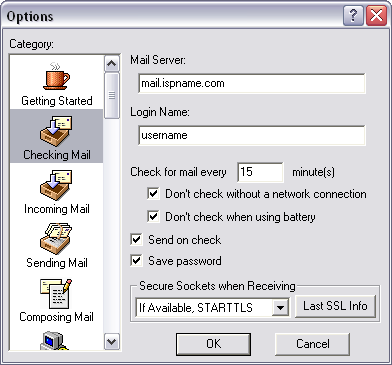 To the right, you can enable Eudora to check for e-mail messages in different time increments. While you're on line, Eudora will verify if you've received e-mail.