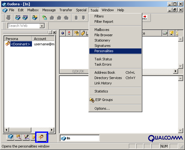 If the Personalities pane is not open, you can click its tab, or click Tools, then Personalities to open the Personalities pane shown at the left of the image below.
