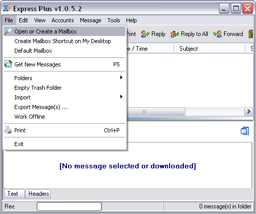 On the Toolbar, click File and select Open or Create a Mailbox from the menu.