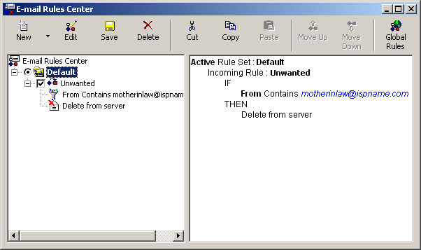 Anytime Goldmine receives an e-mail where the From line contains motherinlaw@ispname.com, it will delete the message. You'll never see it in the Inbox.