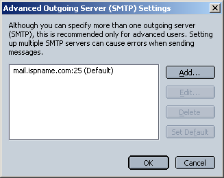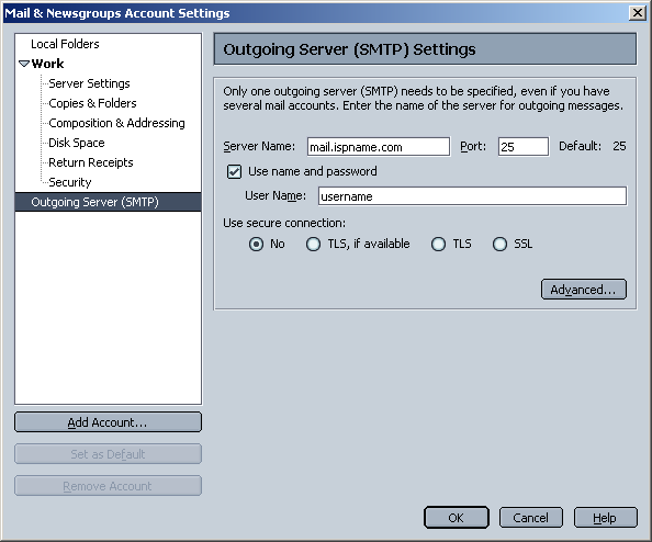 The Advanced Outgoing Server (SMTP) Settings window appears.