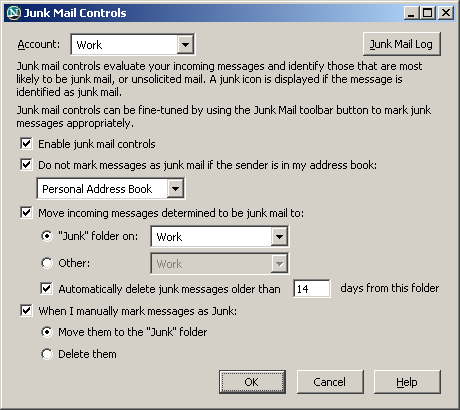 You can either choose to move automatically the messages Netscape determines to be junk to the Junk folder or to the trash.