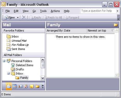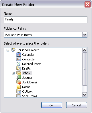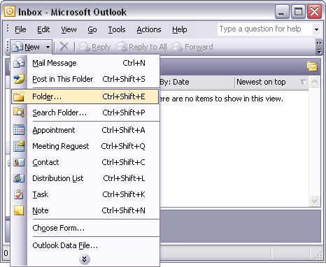 Creating folders in Outlook 2003: