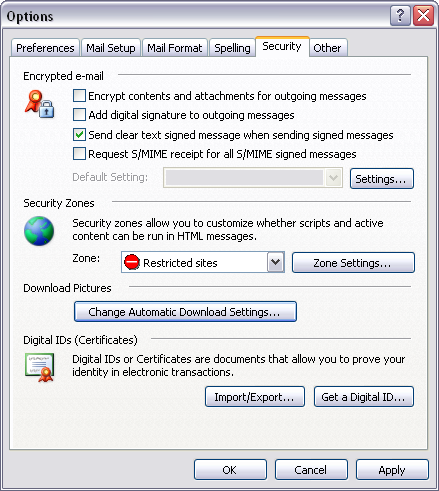 Downloading pictures can be a high security risk. Pictures in HTML e-mail can require Outlook to download the pictures from a server. When you download them from a server, the server will automatically know your e-mail address is a valid one. This could result in much more spam.