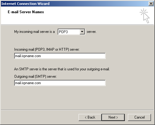 My Incoming mail server is a ? server: This should be set to POP3.