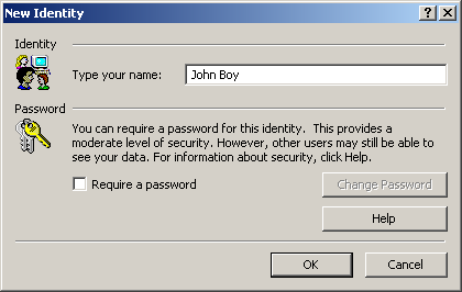 Suppose you have several people in the household using the same computer. If every e-mail address were configured under the same identity, all the e-mail would be downloaded into the same place. You would then have to sort through the e-mails finding which belonged to you and which belonged to any other user. identities eliminate this hassle. Creating an identity is like having your own version of Outlook Express; they help keep your mail from any other users of the computer.