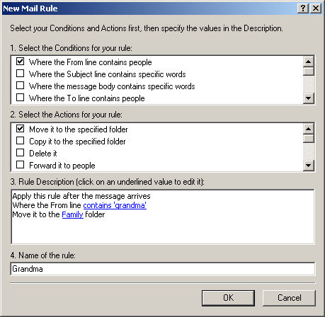 In the fourth field, give the rule a name. In this example, I gave the rule the name 'Grandma'.