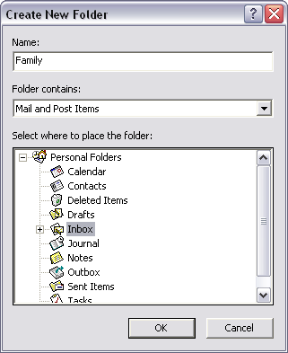 To make the new folder a subfolder of your inbox, highlight 'Inbox' and click OK.