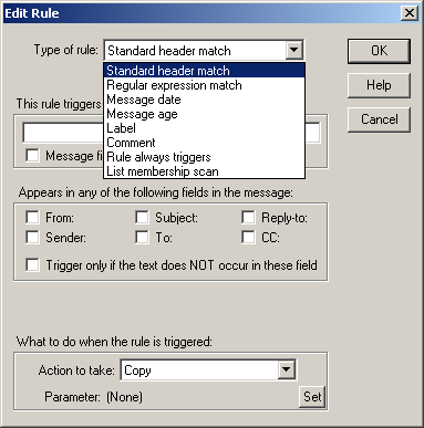 Type of rule = Select Standard header match from the menu.