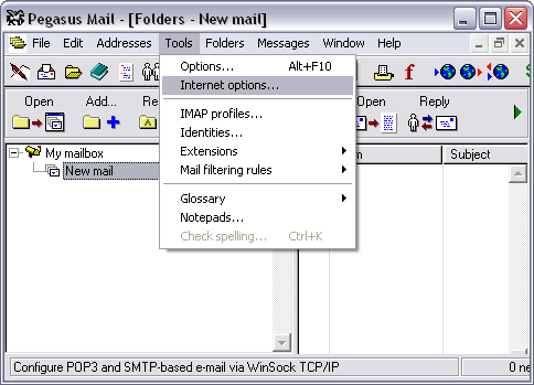 The Internet Mail Options window appears.