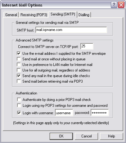General settings for sending mail via SMTP: