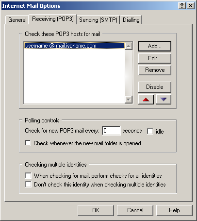 General settings for retrieving mail via POP3: