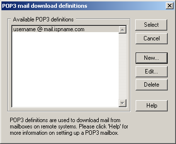 We return to the POP3 mail download definitions screen.