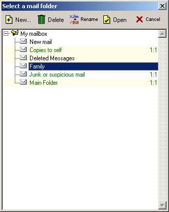 Double click the folder to which you'd like Pegasus to move your e-mail.