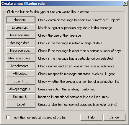 On the Toolbar, click Tools, select Mail filtering rules, and then Create/edit general rule set from the pop-out menu.