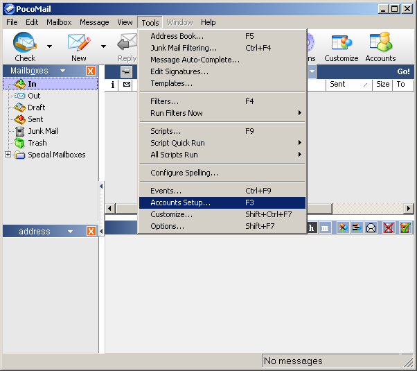 On the Toolbar, click Tools and select Accounts Setup from the menu.