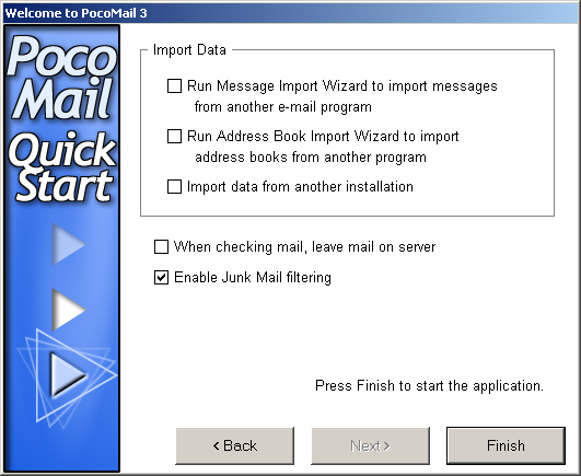 If you'd like to Import any data from previous e-mail clients select the appropriate options.