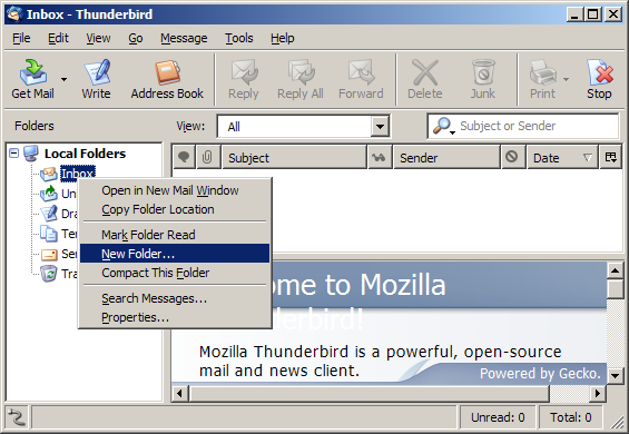 To create a folder in Thunderbird, follow these simple steps: