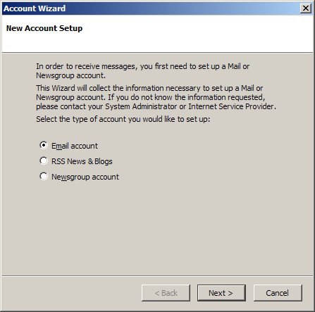 The first time you open Thunderbird, the Account Wizard launches. The Account Wizard walks you through creating your first e-mail account. The following tutorial explains this process.