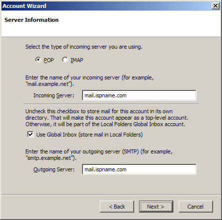 The Incoming (POP3) mail server usually follows this format: mail.ispname.com