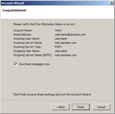The Outgoing (SMTP) mail server usually follows this format: mail.ispname.com