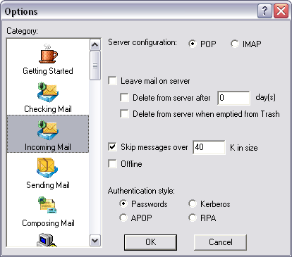 You can also enable Eudora to leave a copy of messages on the server. This, for example, can be important if you access your e-mail at work and at home.