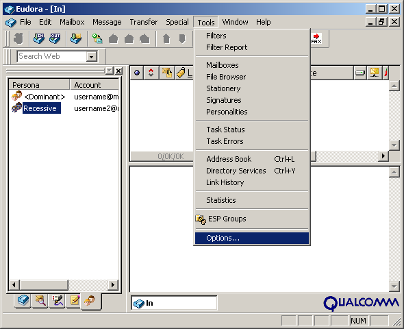Below is a tutorial on setting up e-mail accounts.  In Eudora, e-mail accounts are referred to as personalities.  If you're a user with more than one e-mail account, Eudora can manage them for you.  Just follow the screenshots below.