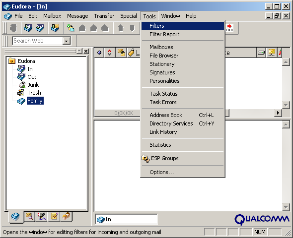 In this example we'll create a filter that will allow Eudora to send e-mail to a specified folder automatically.