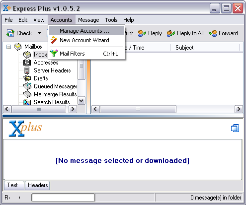 Note: you can also create new e-mail accounts by selecting 'New Account Wizard' from the menu.