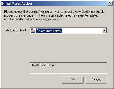 Now we'll assign an action to the rule, or in other words, we'll tell Goldmine what to do with certain e-mails.