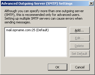 Server Name = The Outgoing (SMTP) mail server usually follows this format: mail.ispname.com (or .net). Replace the "ispname.com (or .net)" with your ISP's name.