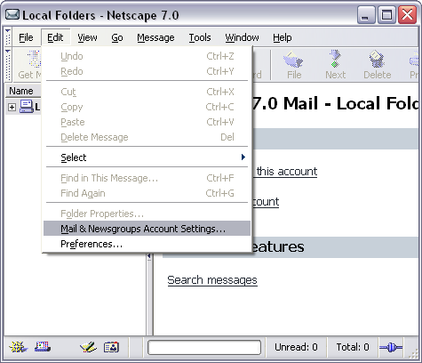 On the Toolbar, click Edit and select Mail & Newsgroups Accounts Settings from the menu.