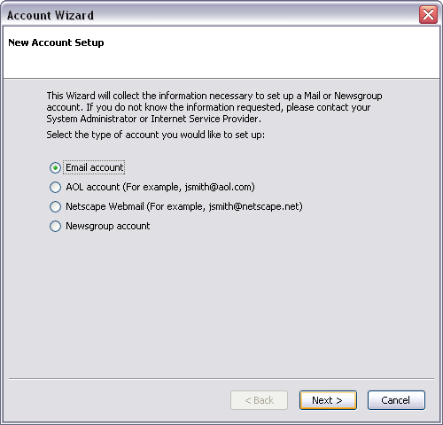 The Account Wizard launches.