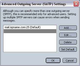 The Advanced Outgoing Server (SMTP) Settings window appears.