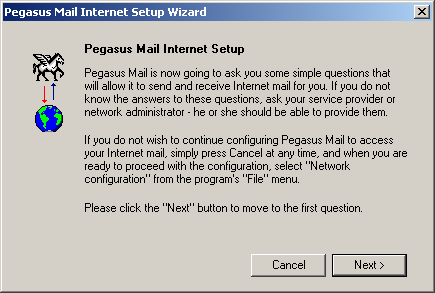 The first time you start Pegasus the following wizards launches: