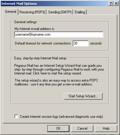 General settings for retrieving mail via POP3: