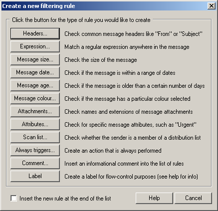 On the Toolbar, click Tools, select Mail filtering rules, and then Create/edit general rule set from the pop-out menu.