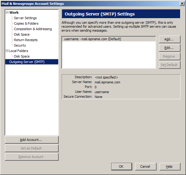 Outgoing Server (SMTP) settings: