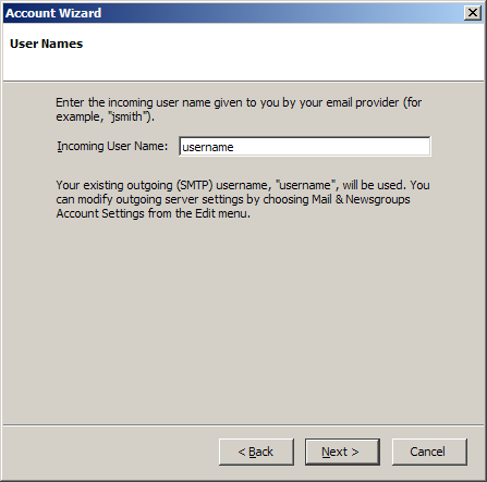 User Name = Enter your e-mail username (everything before the @).