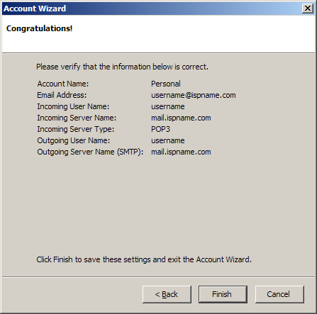 Incoming server = The Incoming (POP3) mail server usually follows this format: mail.ispname.com (or .net). Replace the "ispname.com (or .net)" with your ISP's name.