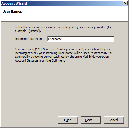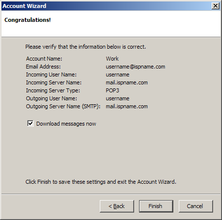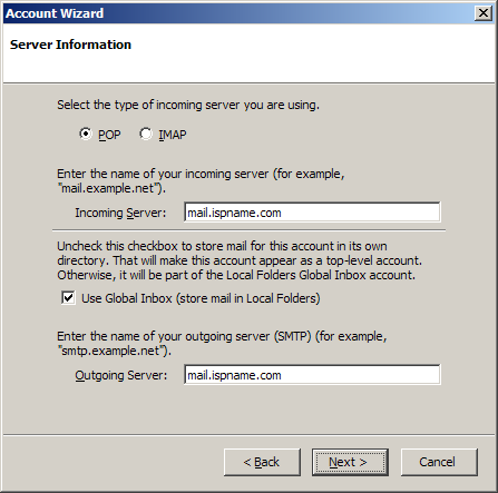 Outgoing server  =  The Outgoing (SMTP) mail server usually follows this format: mail.ispname.com (or .net).  Replace the "ispname.com (or .net)" with your ISP's name.