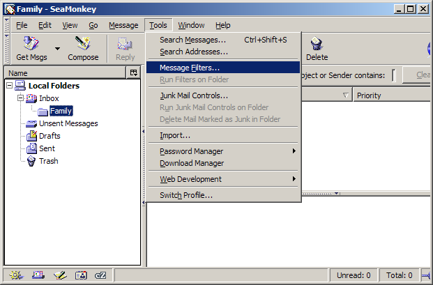 In this example we'll create a message filter that will allow SeaMonkey to automatically send e-mail to a specified folder.