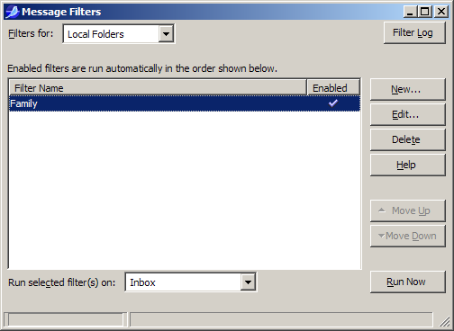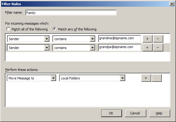 Now whenever I receive an e-mail from 'grandma' or 'grandpa', SeaMonkey will automatically send it to my Family folder.