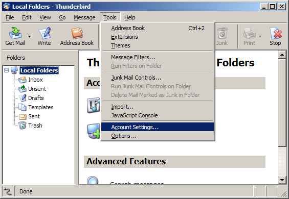 On the Toolbar, click Tools and select Account Settings from the menu.