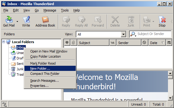 Creating folders helps you to organize your e-mail.  Certain types of e-mail messages can be placed in the folders you create.  Folders work well with message filters.